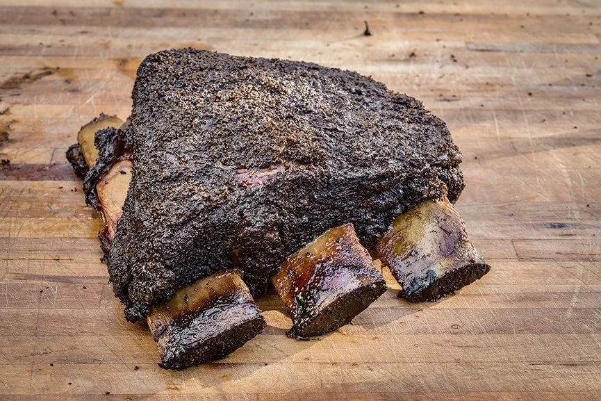 Slow Smoked Dino Beef Short Rib 3 Bone Rack.